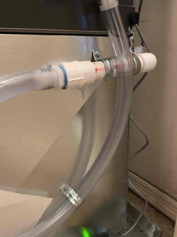 Responded to no-cool call on recently installed Lennox unit with warranty date of April 2027. Upon inspection, discovered condensate drain issue with P-trap assembly showing improper installation and potential blockage affecting system operation. Corrected drain line configuration, verified proper pitch and secure mounting of condensate tubing, and confirmed system returned to normal cooling operation with drain flowing freely.